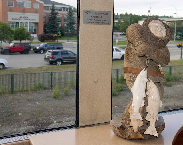 This cute statue on the train is made out of fossilized whale and walrus bone.