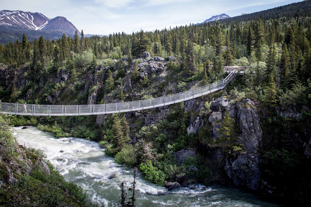 We stopped at the Yukon suspension bridge over the Tutshi river. Near the suspension bridge was a restroom stop and shops but you had to pay to get in. Some of us snuck in. Some things just cant wait….. We all were shaking our heads as to why they didn’t have the gift shop before you arrived at the suspension bridge to at least have revenue from the curious.