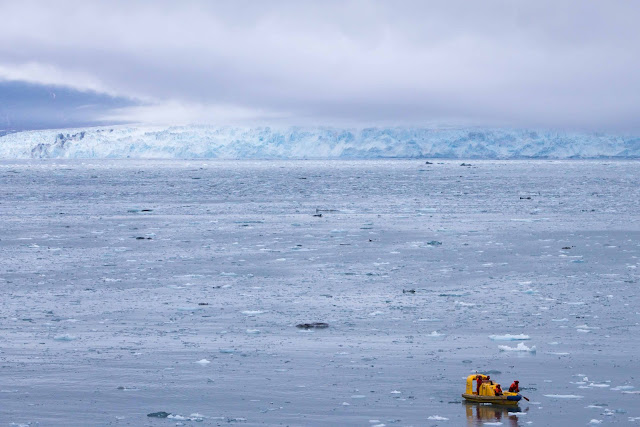 The crew picked up a chunk of the floating pieces of the glacier and brought it aboard. You’ll see it later in the pictures