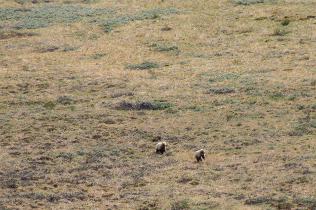 Grizzly Cubs playing and rolling down the hillside. We also saw a fox den (too far away for pictures)