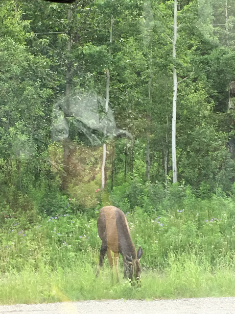 We saw many moose wandering and grazing along the roadways. (and my brothers reflection)