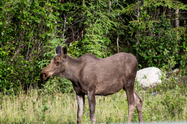 We saw many moose wandering and grazing along the roadways. (and my brothers reflection)