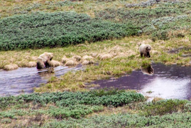 Grizzly Cubs playing and rolling down the hillside. We also saw a fox den (too far away for pictures)