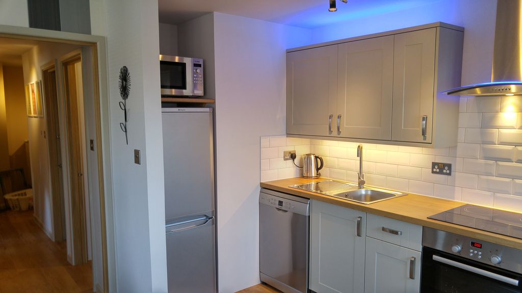 | The kitchen has an induction hob a.k.a induction Oven. |