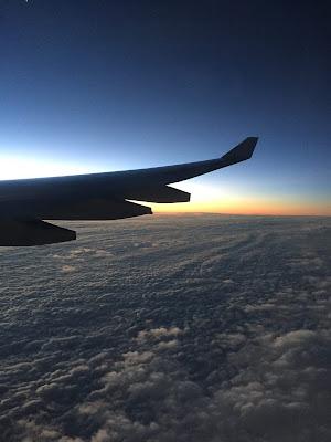 | Flying into Spain above the clouds had a beautiful view of the sunrise. |