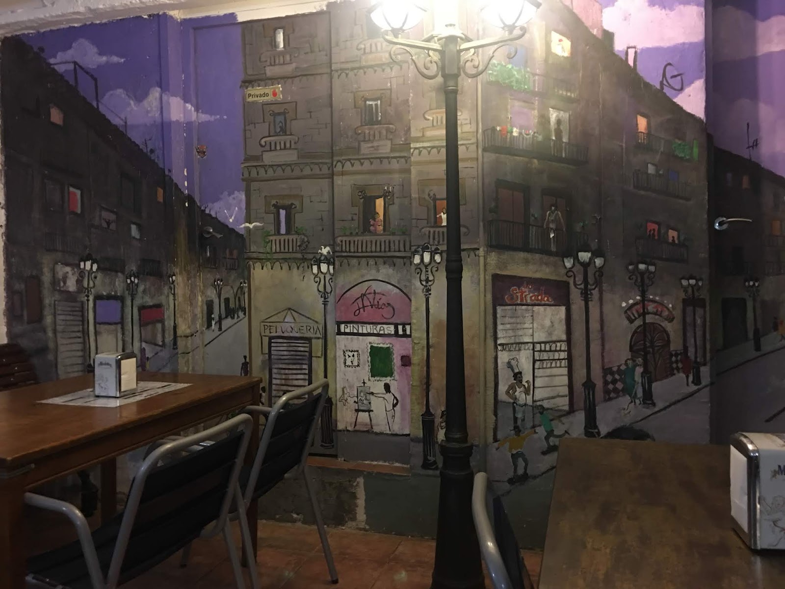 Last night after we arrived in Barcelona for the night prior to boarding, we walked down to a quaint little pizza place. The 4 cheese “pepa” aka pepperoni. Chuck needs to learn some Spanish! Or maybe both of us if we are going to be able to communicate well. The cute little restaurant was definitely a whole in the wall but well worth it. The pizza was great. We got up to leave and realized they only take cash so had to go to the ATM to buy some Euros to pay for dinner.