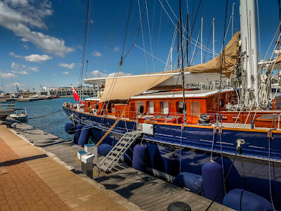 It was a beautiful blue sailing yacht that would hold 6 people and 12 crew. As large as it was, one would need all 12 crew. I couldn’t get it all in one picture!
