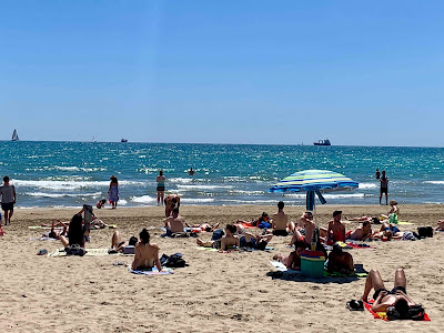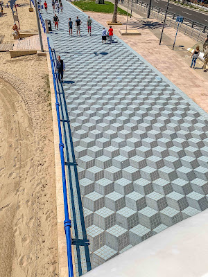 The walkway was so cool. It was a 3-D effect. The soft sand on the beaches was full of holiday makers aka vacationers.
