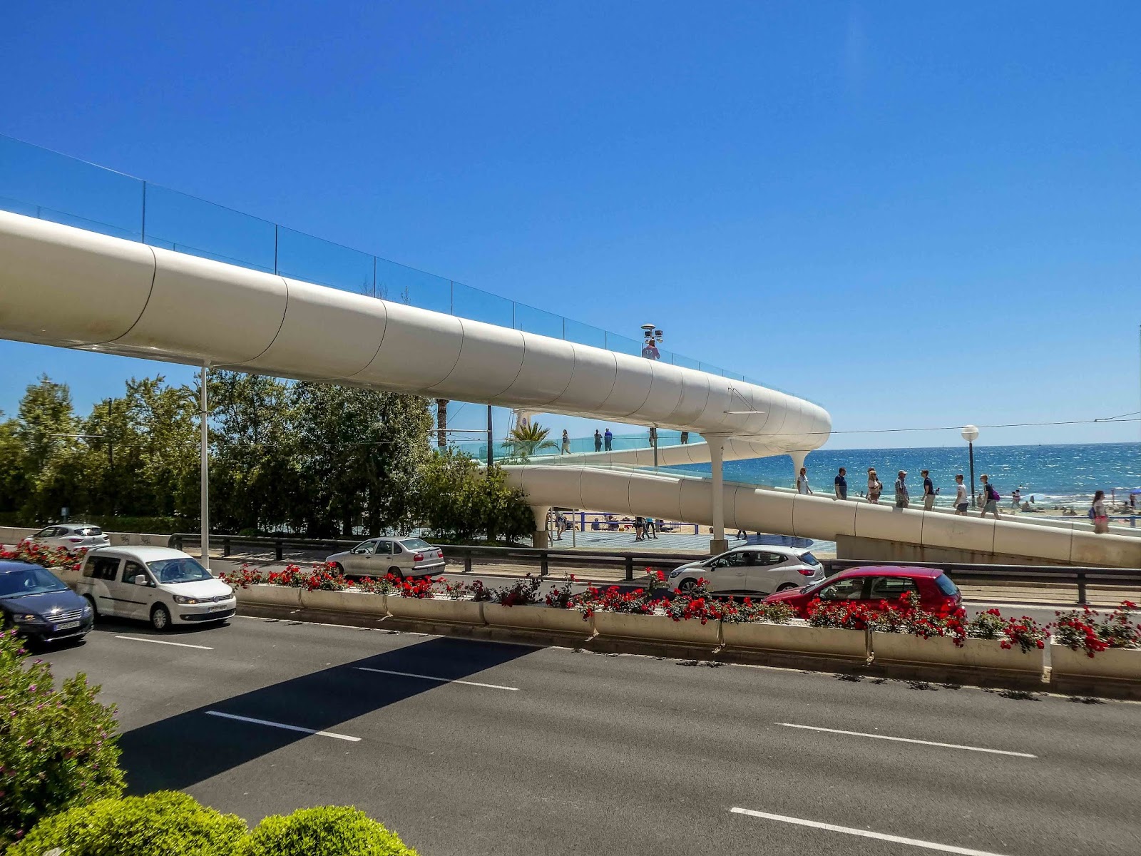 We walked across this cool looking bridge that took us across the highway to the beach.