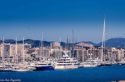 | Amazing yachts with the hotels and homes stacked up the mountain |