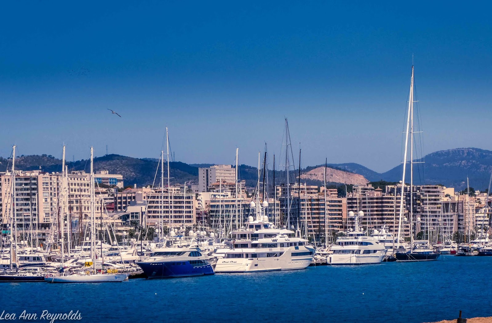 | Amazing yachts with the hotels and homes stacked up the mountain |
