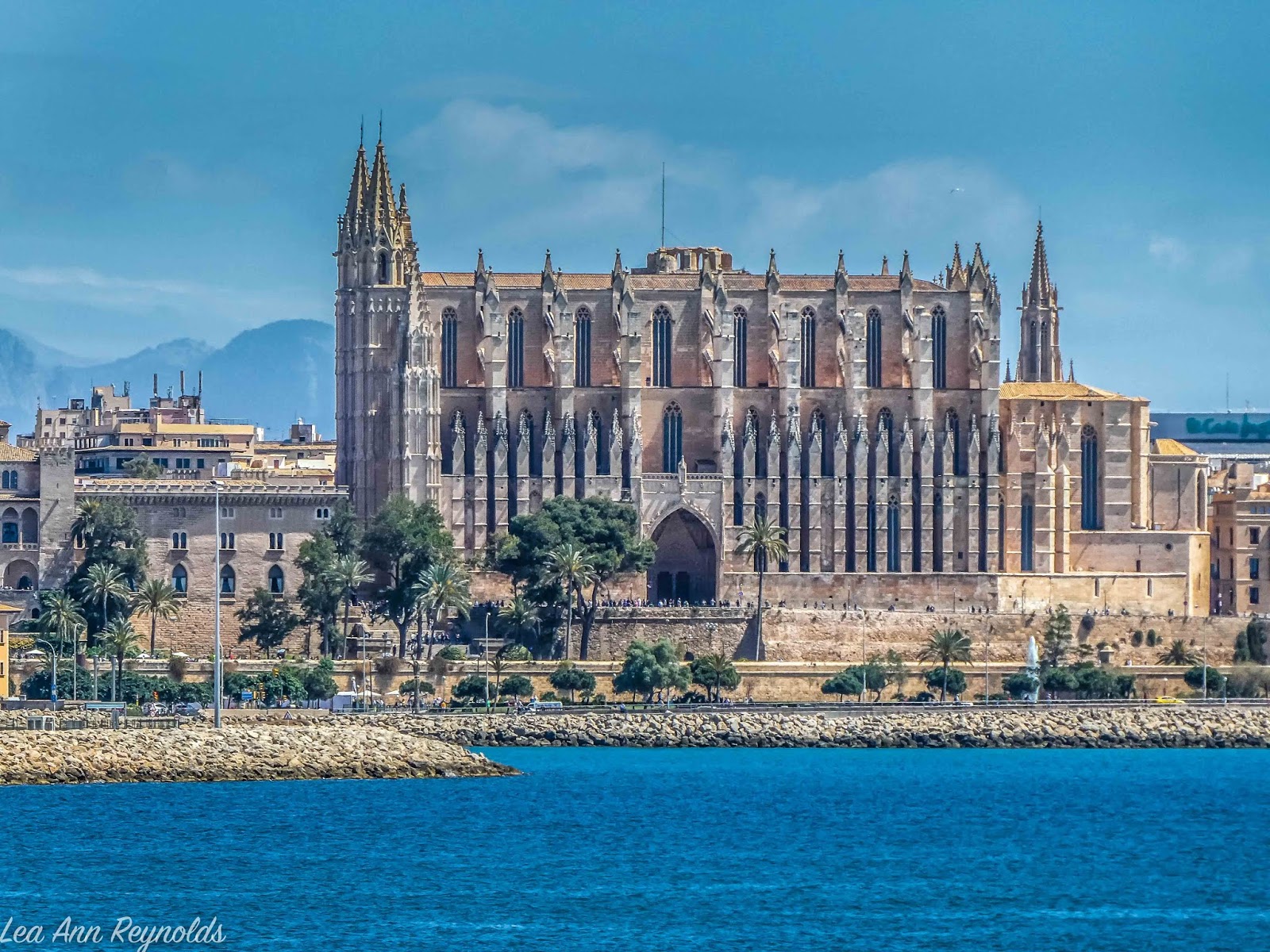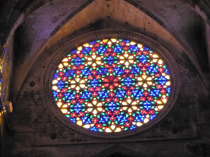 One of our final stops while on the cruise was on a small island located on the East side of Spain between Barcelona and Alicante. Beautiful little resort community with a gorgeous cathedral located on the waterfront. It was absolutely stunning with the amazing architecture. The Catedral-Basilica de Santa Marie de Mallorca, a Gothic landmark, was started in 1276 (thirteenth century). It is a Levantine Gothic style and has one of the largest Rose windows in the world known as the Gothic eye. I’m including stock photos but we didn’t get that close. It is beautiful. These windows were added in the 16th century.