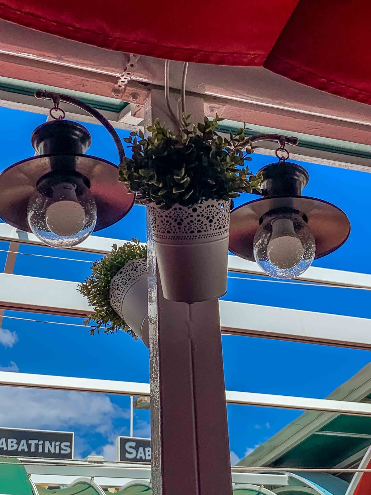 | The lights and plants around the restaurant were nicely decorated. |