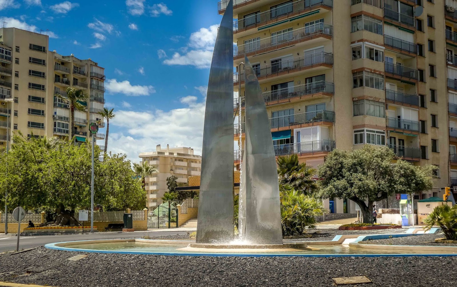 | Another sculpture lining the streets. This one has a man made waterfall in the middle. |