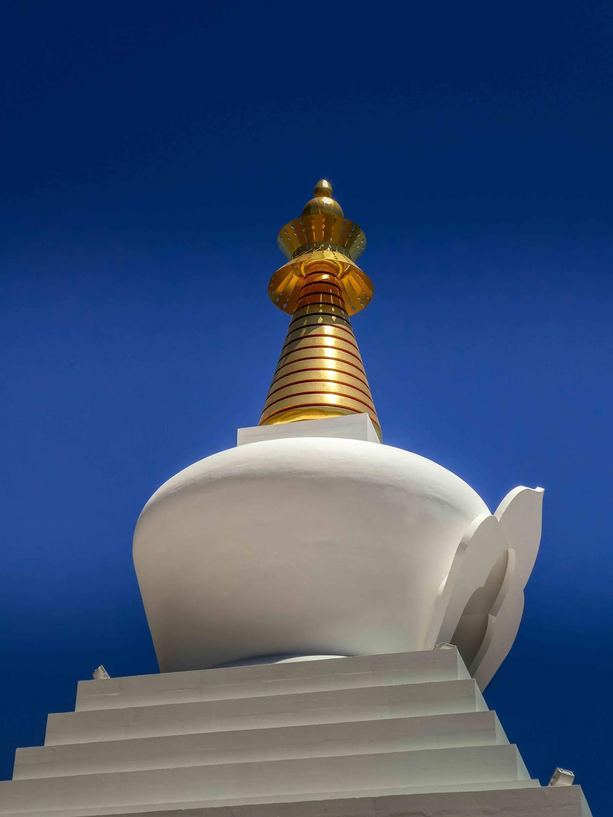 There are 8 types of Tibeten Stupas. This one is beautiful. It was built by a Buddhist master Lopon Tchechu Rinpoche. His last project, the Enlightment Stupa built in Benalmadena by architect Wojtek Kossowski, the largest Stupa in the West, is considered by many to be the crown jewel of all Lopon’s work.