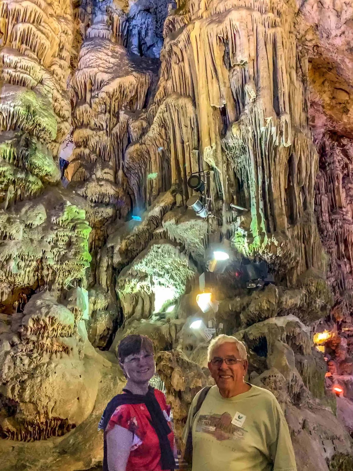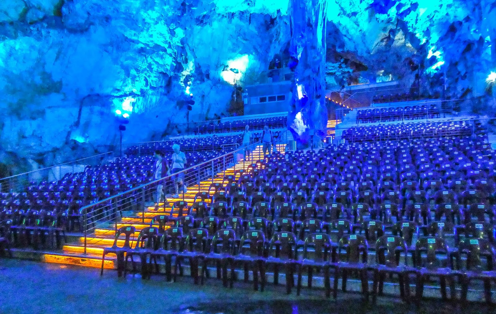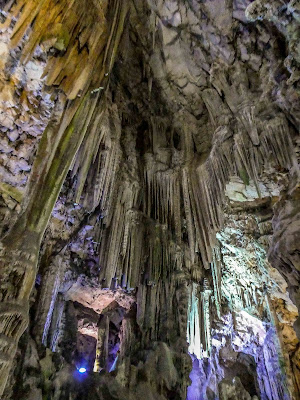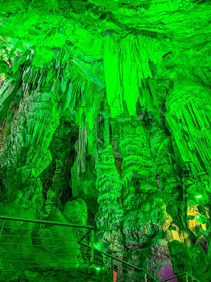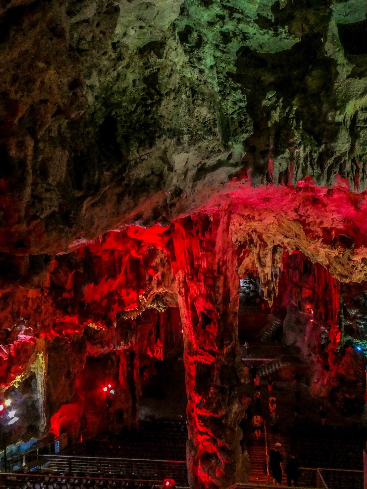 There is a light show of sorts inside the cave that turns different colors on the rocks that made it a beautiful sight to see.