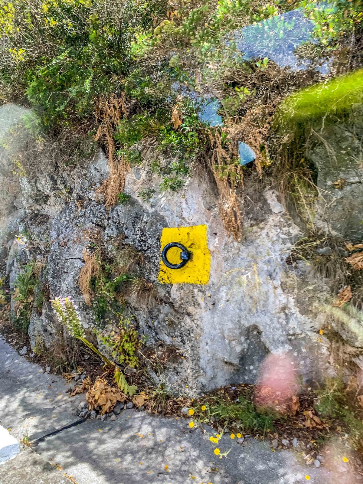 | Iron loops in the walls along the roadway used in the 1800s with ropes to haul items up the mountain pulling by hand. |