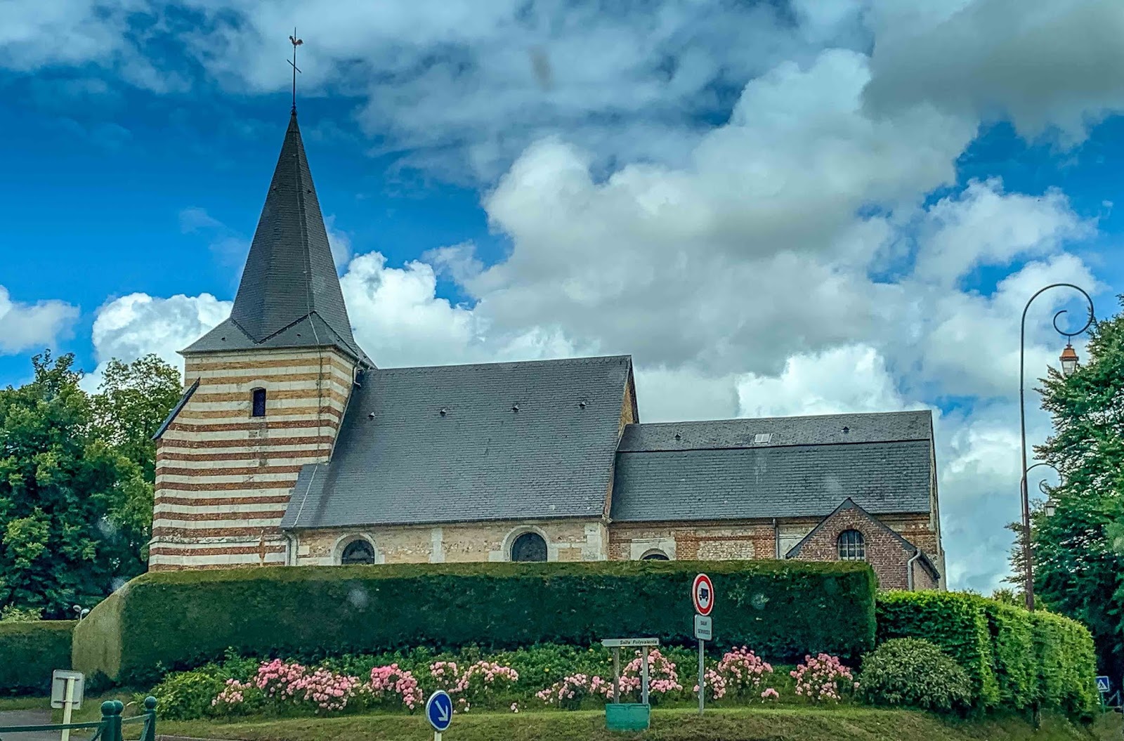 | Beautiful landscaped church along the drive to Etretat and Honfleur |