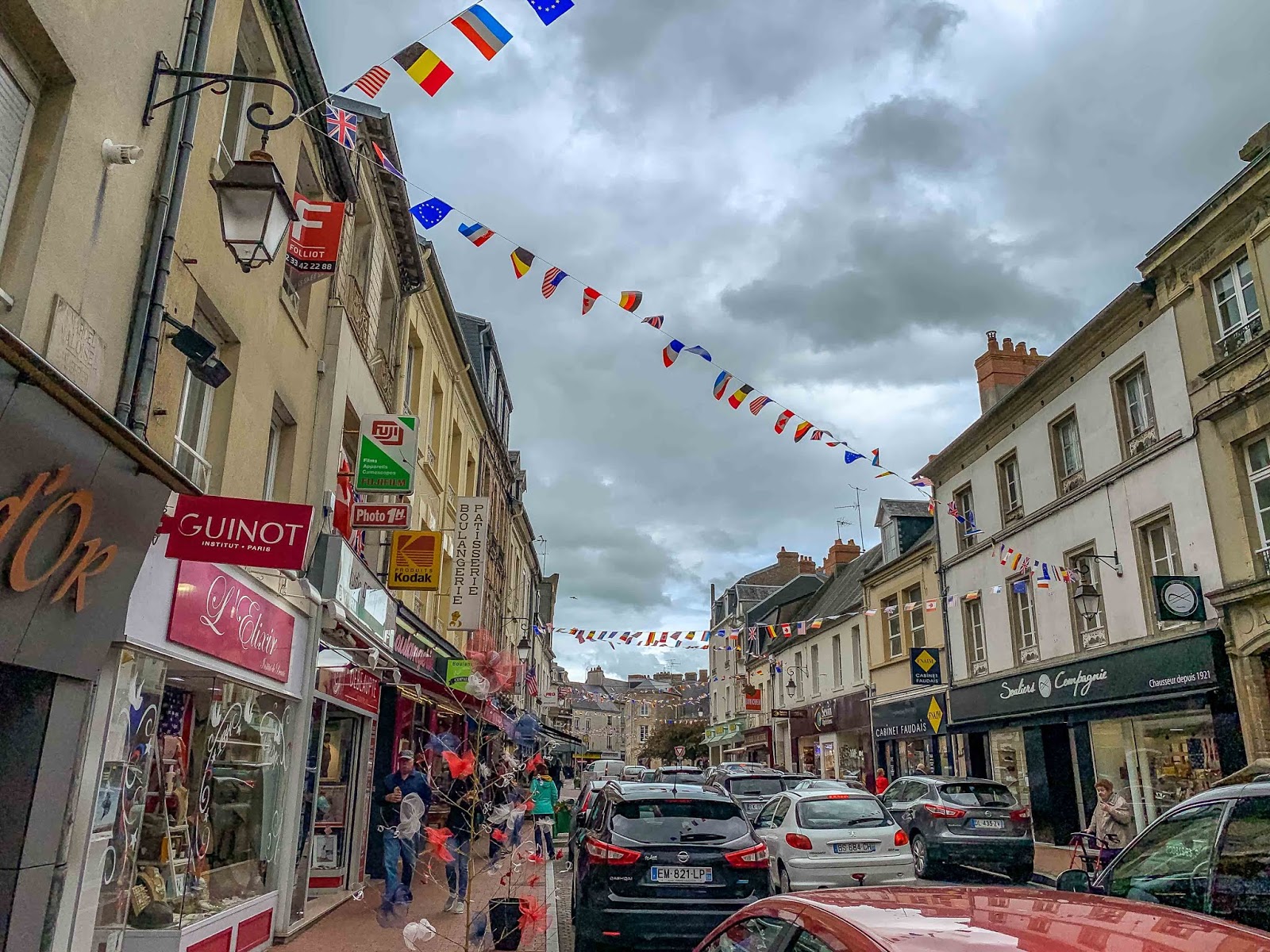 | Small village of Carentan, France. Flags of the hero’s flying everywhere |