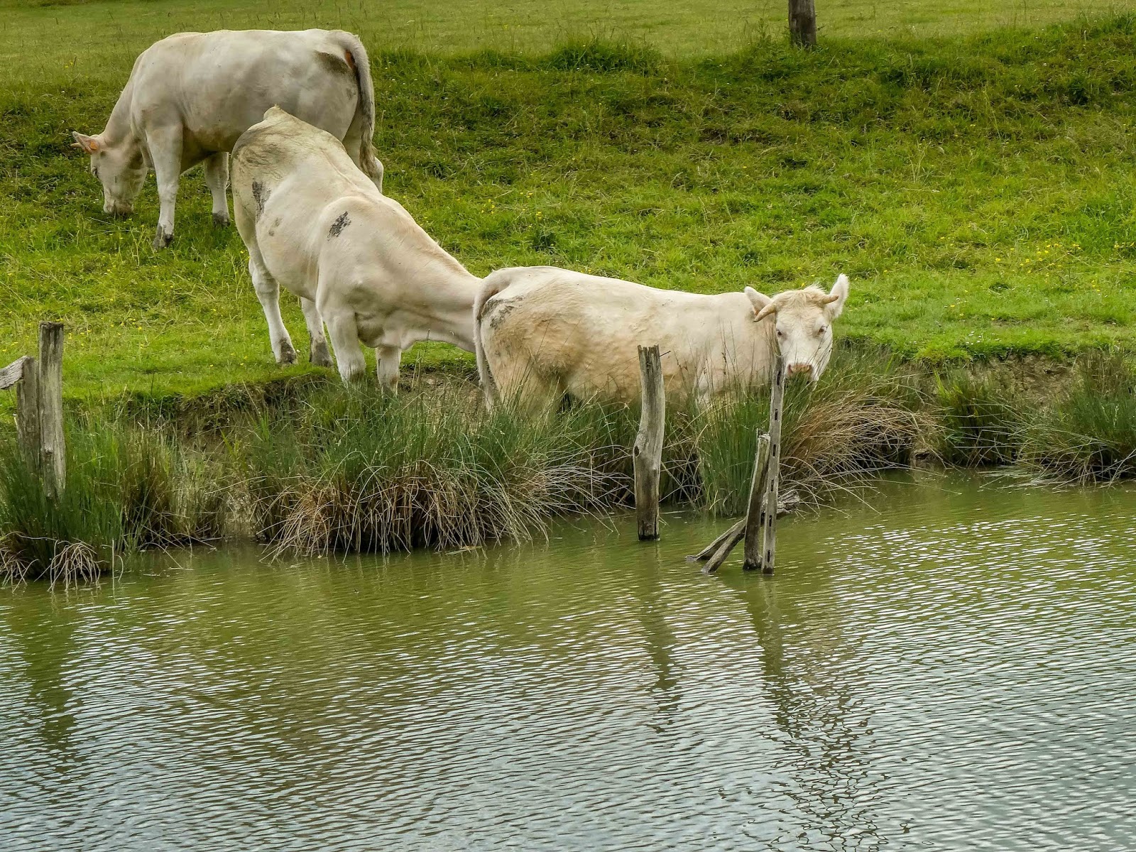 | We crossed paths with some cows at their watering hole |