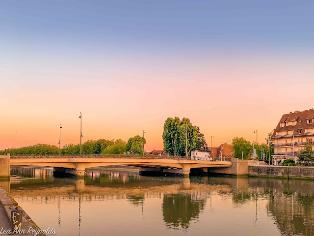 Many of the fishermen we watch daily, leave around 9-10 pm and come back in the mornings when we are having our coffee.  Last night walking to dinner we were able to cross this bridge over the lock because the water was so low around 7 pm that they had it closed to keep boats safely tucked inside the marina with as much water as possible. 2 hours later, leaving dinner, the water was up at least 2-3 feet which made it look more beautiful as the sun was setting but they opened the gate! So, we had to walk around the long way and although a very nice night for a walk (in the daylight at 10 pm) we missed the sunset and it was a beauty from where we were standing. Many condos and homes face the water so we weren’t able to see the full setting on the water but the sky was really pretty.