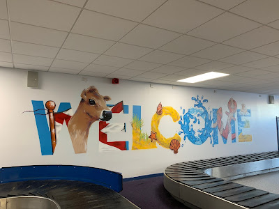 | The welcome sign at baggage claim. Love the Jersey cow. |