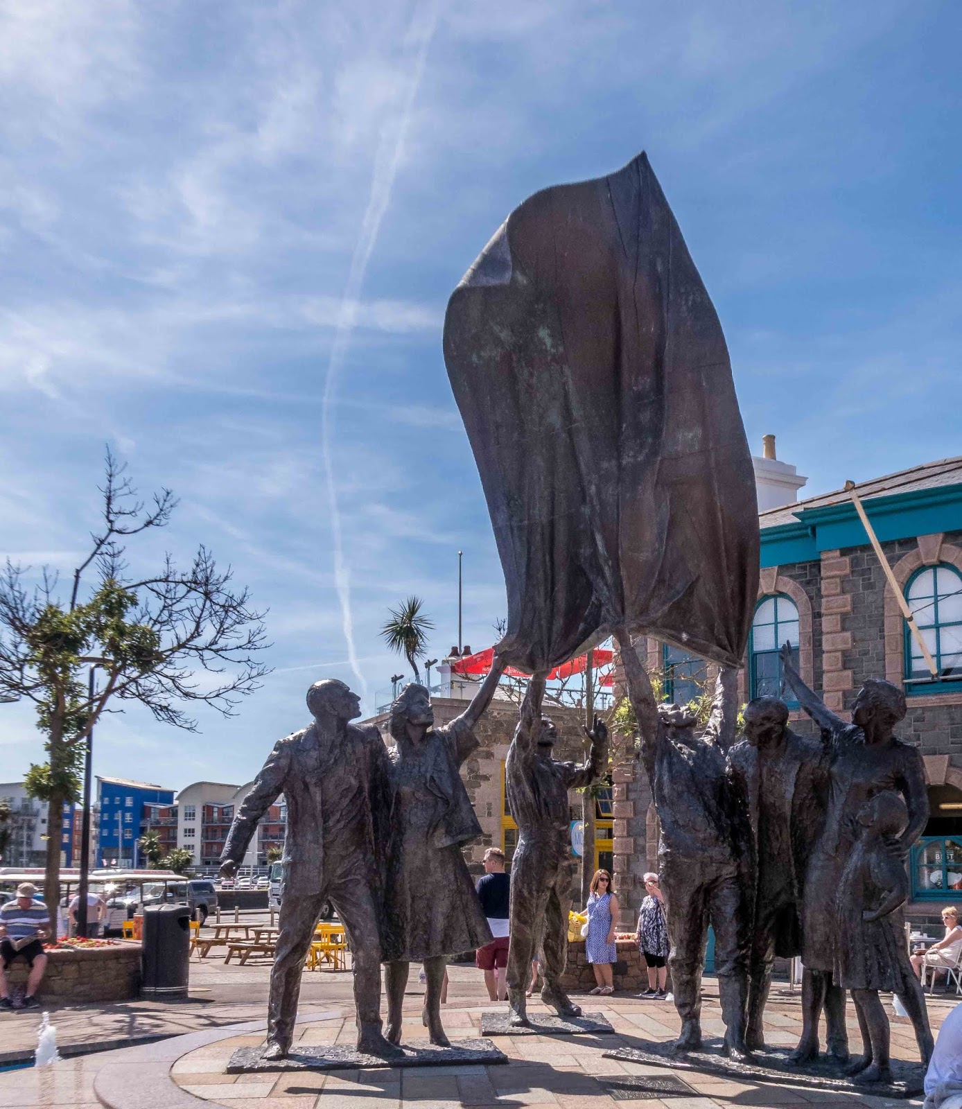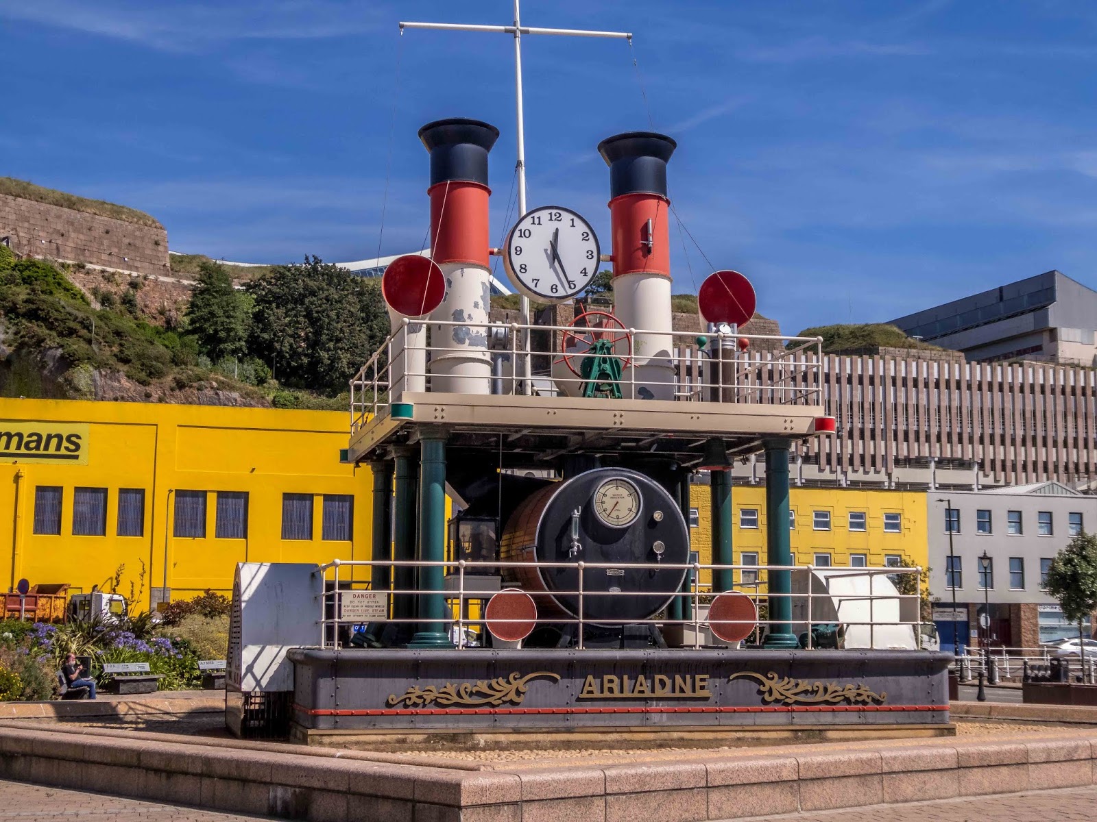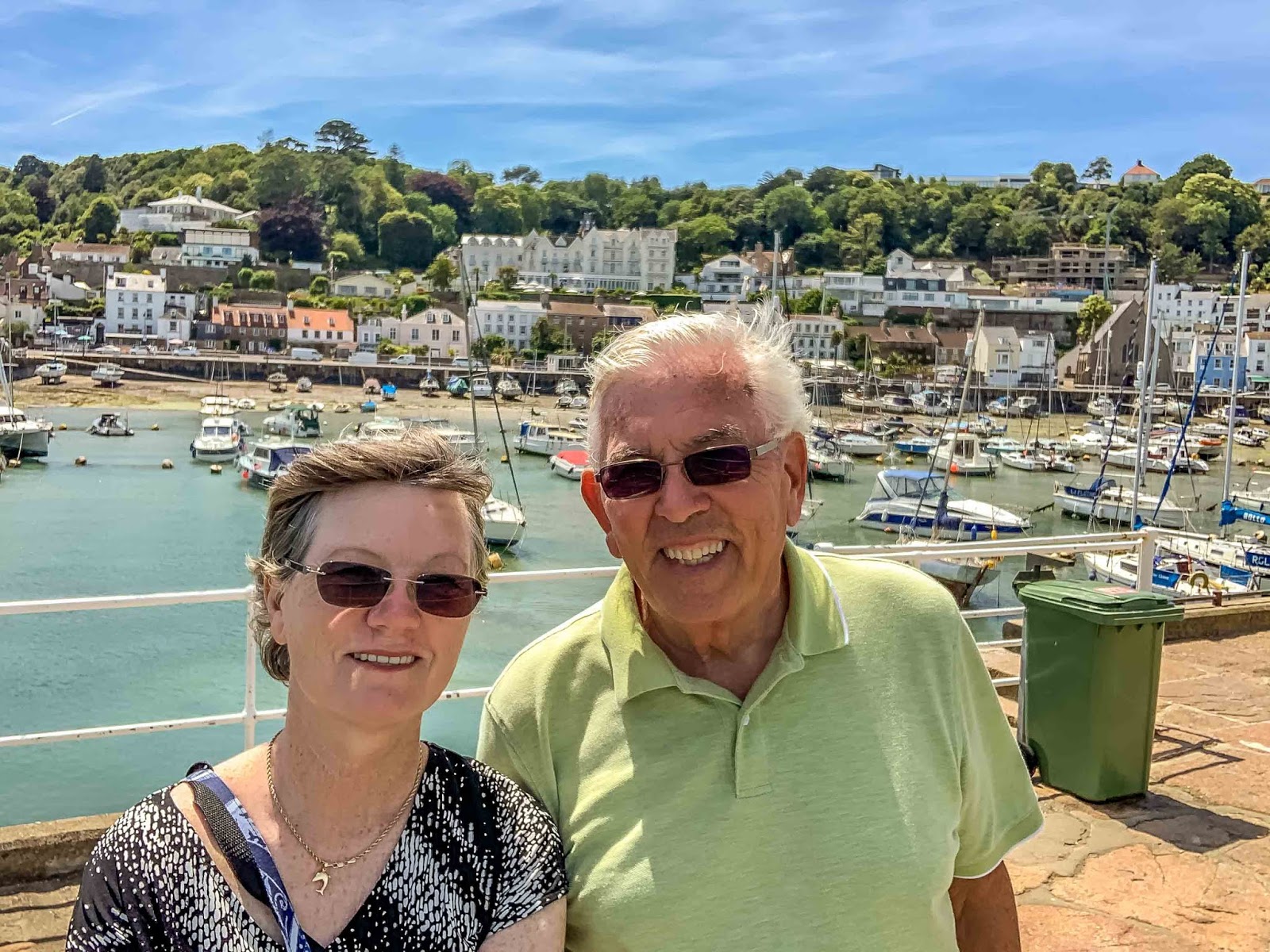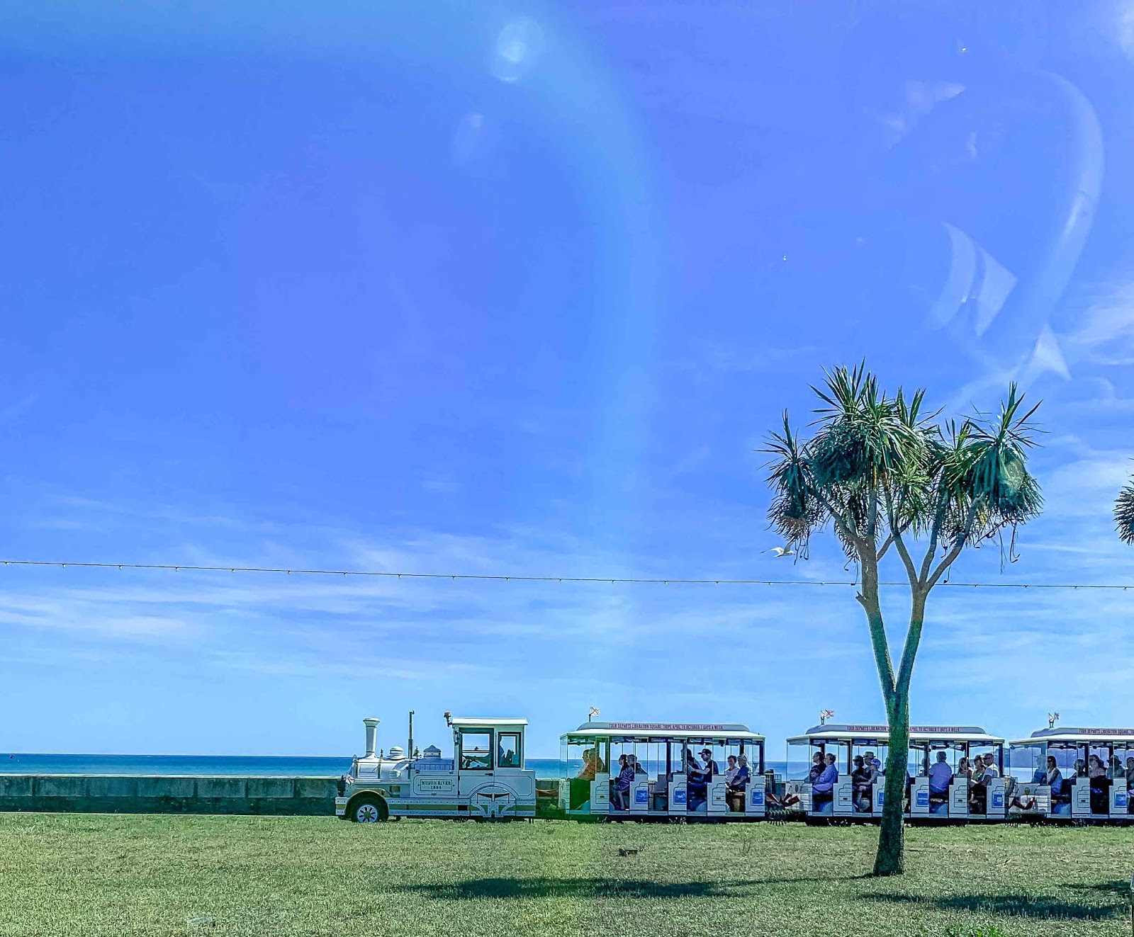 Today we made our way downtown to catch the “le Petit Train”, a little choo-choo train to ride along the St. Aubin’s bay area and learn a little history about the island. It’s a beautiful day for a ride. It was 79 degrees Fahrenheit/26 Celsius.