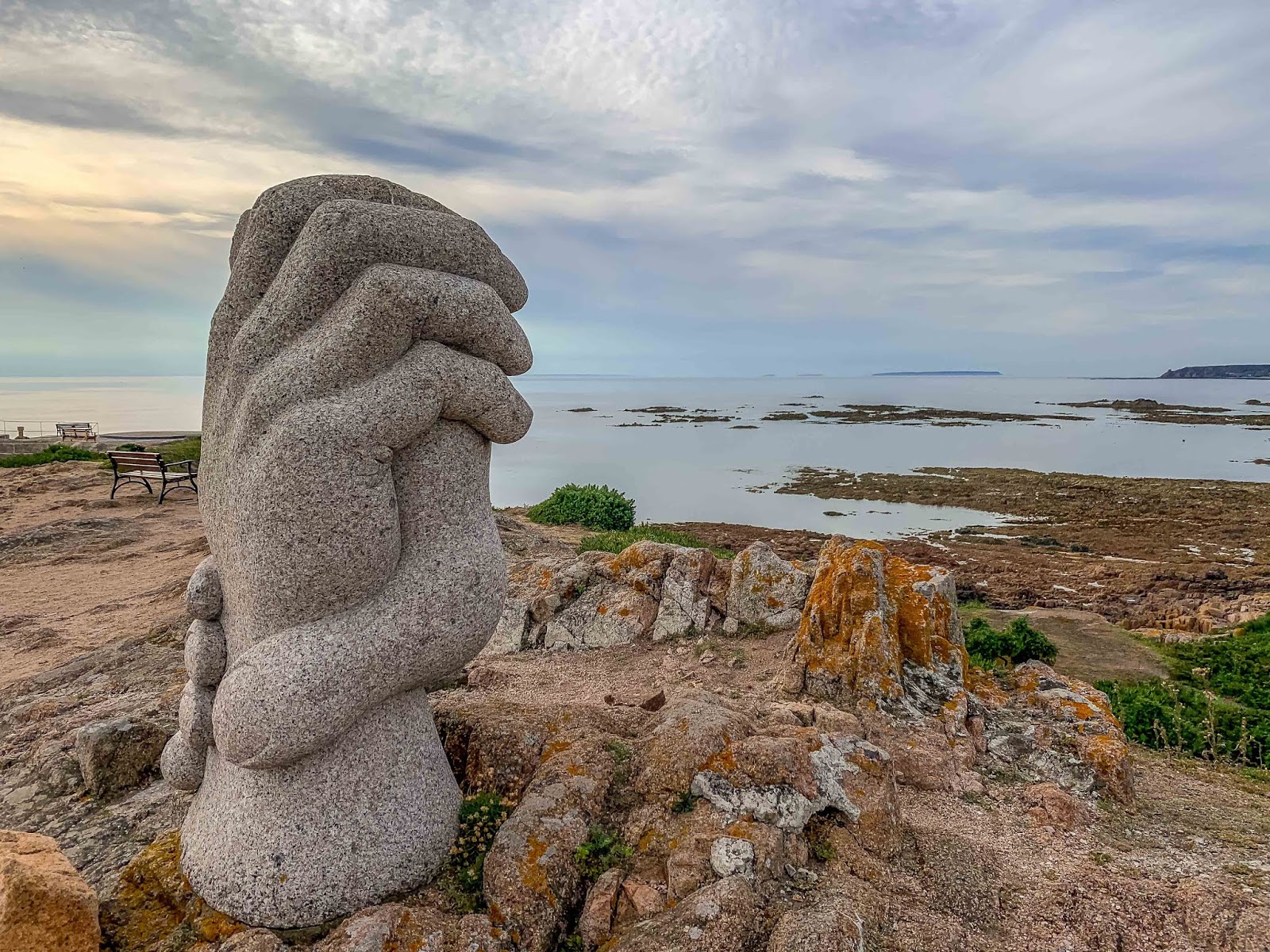 In 1995 a French Catamaran was sailing from Jersey to Sark when weather suddenly turned for the worse. By the grace of God all 307 passengers were rescued. This memorial was erected in thanksgiving and a tribute to that rescue.