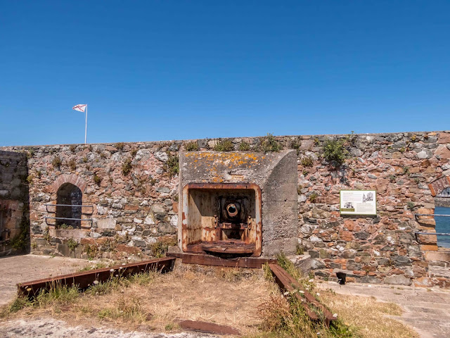 The castle was interesting. It is called Elizabeth Castle and is named after Elizabeth I who was the queen of England around the time the castle was built. The castle was built on a tidal island within the parish of Saint Helier, Jersey. It was built in the 16th century when the power of cannon meant that the existing stronghold at Mont Orgueil castle (we’ll visit this castle next) was insufficient to defend the Island and the port of St. Helier was vulnerable to attack by ships armed with cannons. It has many, many cannons.