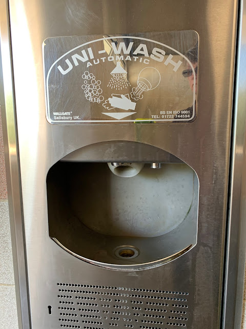 | This was in the bathrooms. Hold your hand under the middle and it squirts soap, then water and then the dryer comes on. |