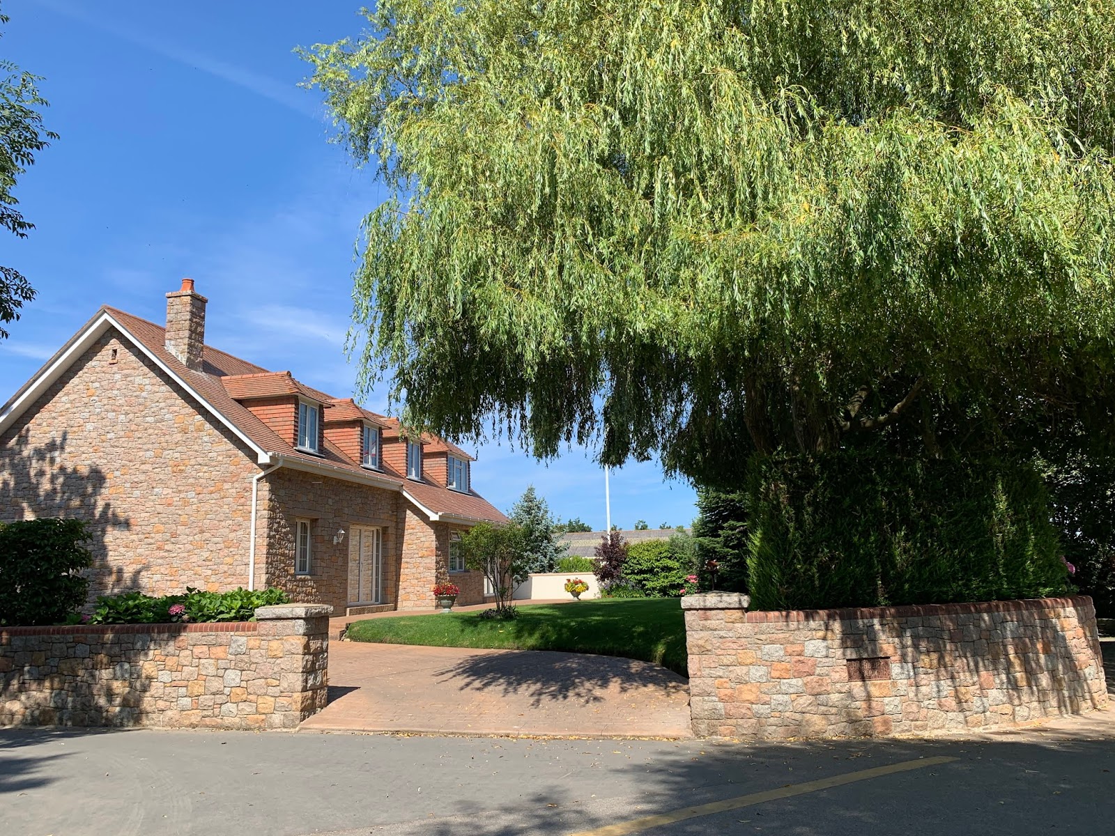 | The homes here are so neat, clean and beautiful. All have rock walls as “fencing” |