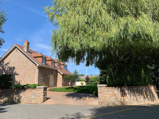 | From where we are staying, the road overlooks this beautiful countryside. Mont Orgueil Castle in the background. |