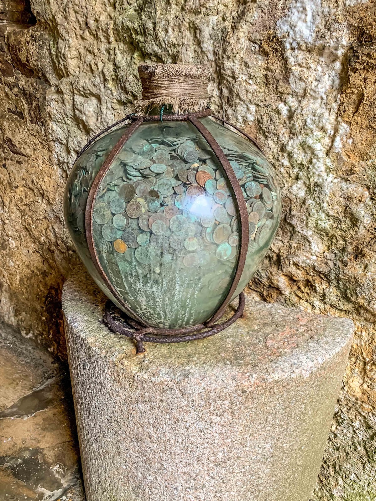 | The Wishing Well tradition dates back to the Celts who threw the spoils of war into lakes and rivers for good luck. Chuck dropped a few coins. It was a long way down! |