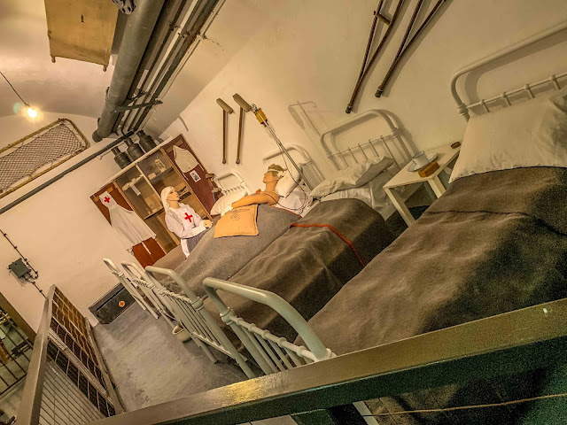 (No heat was on today as we were really cold by the time we finished the tour.) A system of gas-proof doors was installed to maintain a clean airflow in the tunnels, and a fully equipped operating room (theatre as its called here in Jersey) was installed.
