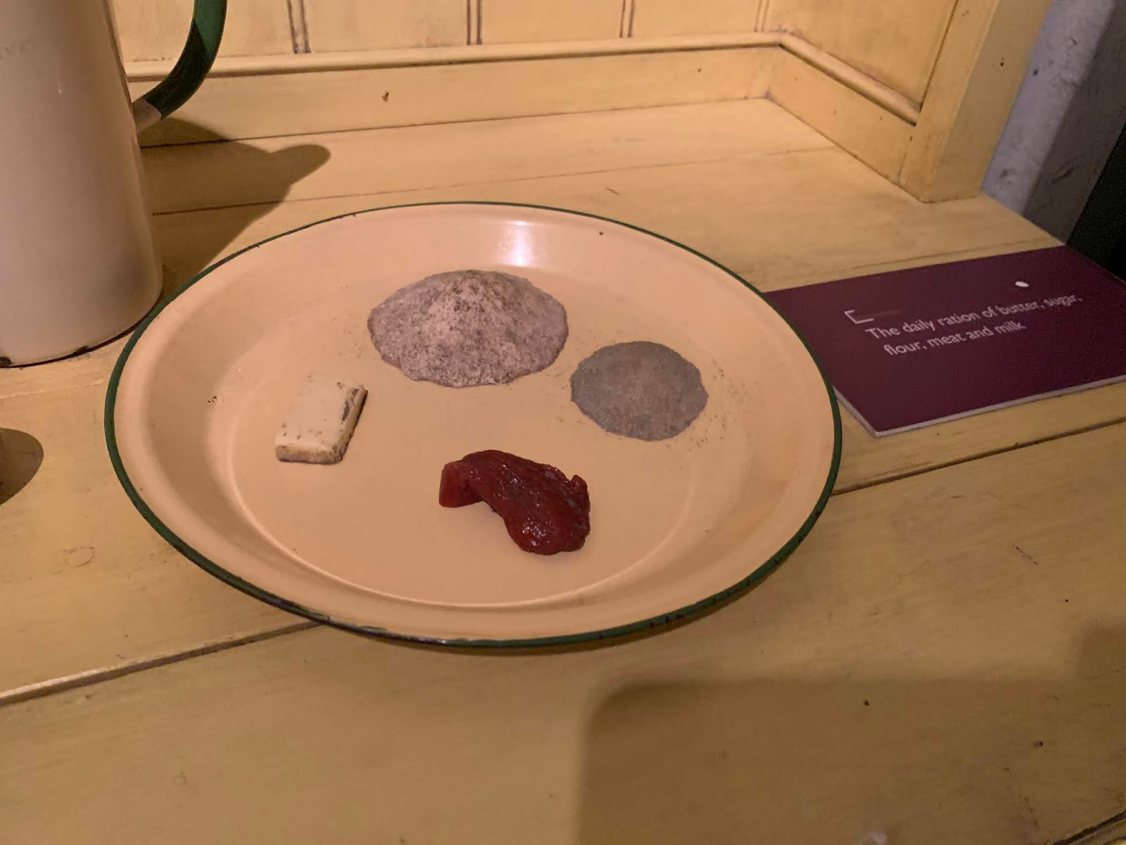 | The daily ration of butter, sugar, flour, meat and milk |