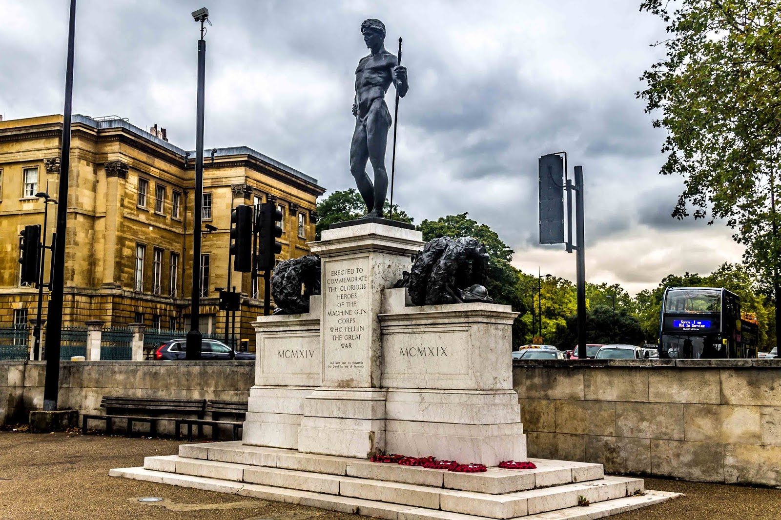also known as The Boy David, is a memorial to the casualties of the Machine Gun Corps in the First World War. It was erected to commemorate the glorious heroes of the machine gun corp who fell in the great war. There is a bible quote on the front 1 Samuel 18:7: “Saul has slain his thousands but David his tens of thousands”. Between 1915 and 1922, some 170,000 served in the Corps, of whom 2,800 were killed and 48,000 were wounded, missing or prisoners-of-war. The high casualty rate of the Corps, nearly 30%, arose from the exposed position from which it typically fought, leading to its nickname, “The Suicide Club”.