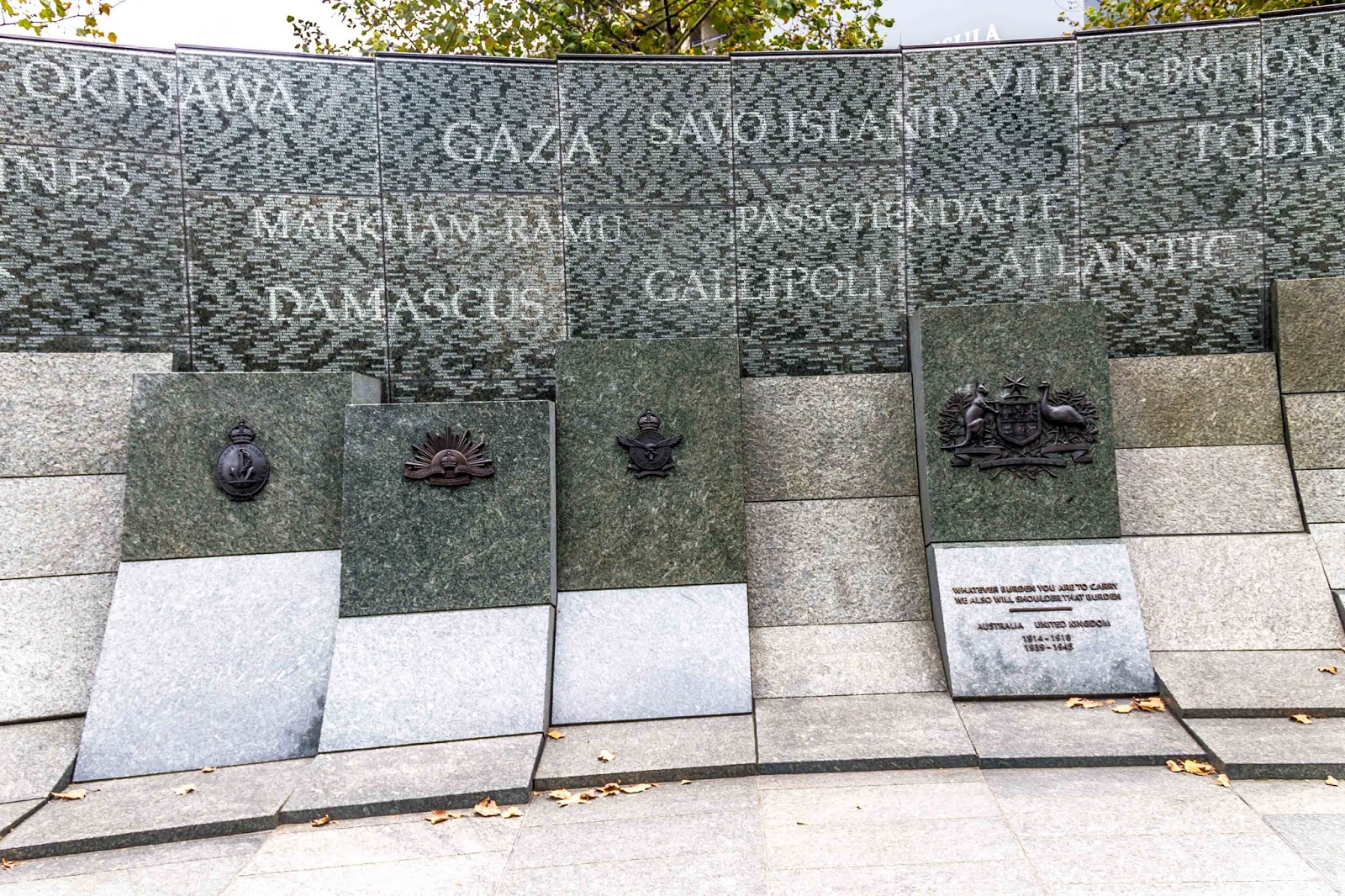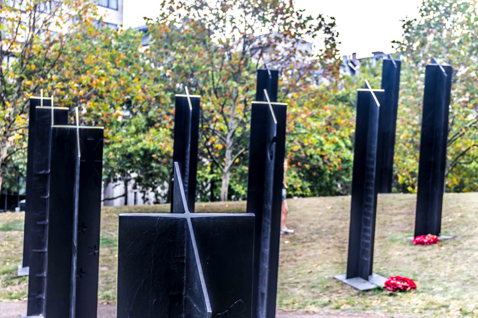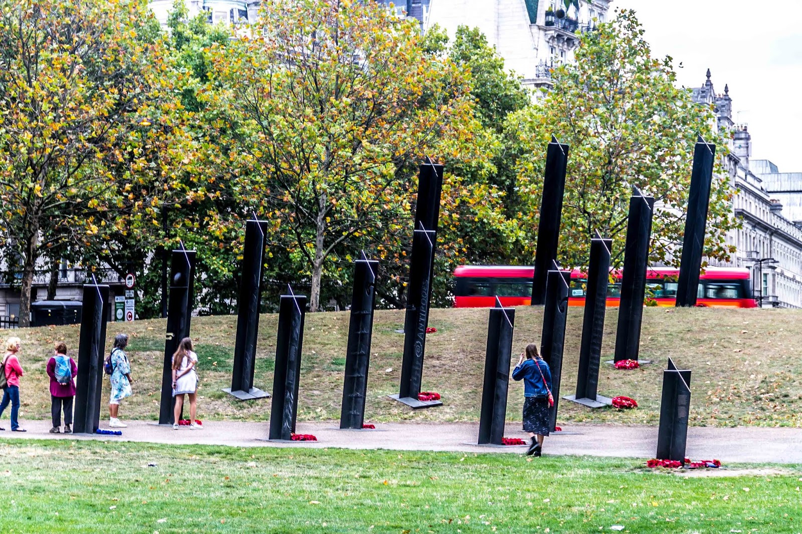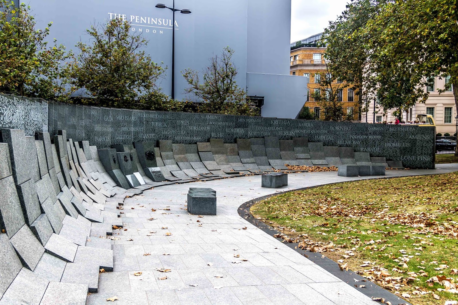 We’ll find the Marble Arch and add it to our collection of photos. In the area around the Arch, there are 4 memorials. 1) The Australian War Memorial was dedicated in 2003 to the 102,000 Australian lives lost in the First and Second World Wars. The granite stones are inscribed with the names of 23,844 towns in which the Australian soldiers were born, in Australia, the UK and elsewhere. Parts of some town names are picked out in bolder type, creating the names of 47 battles in which Australia was involved in a larger font. It was a beautiful memorial.