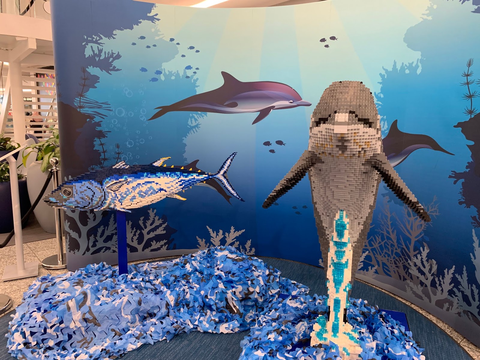 | Bottlenose dolphin – 3 builders, 84 hours and 22,601 bricks. Bluefin Tuna – 1 builder, 68 hours and 7,603 bricks |