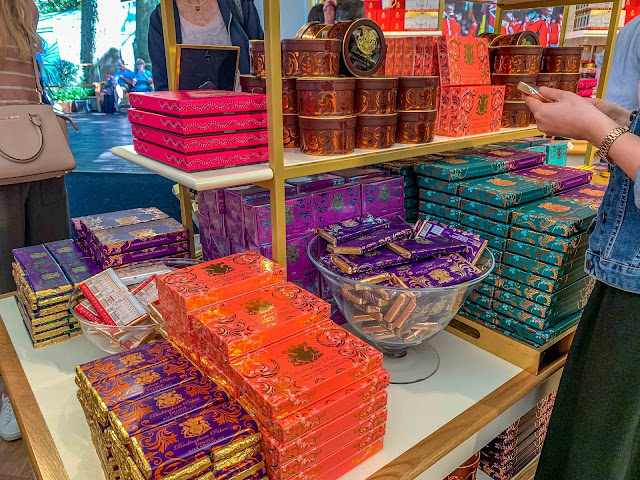 | Much of the gift shop contents were bright and colorful. Lots of chocolate and china! |