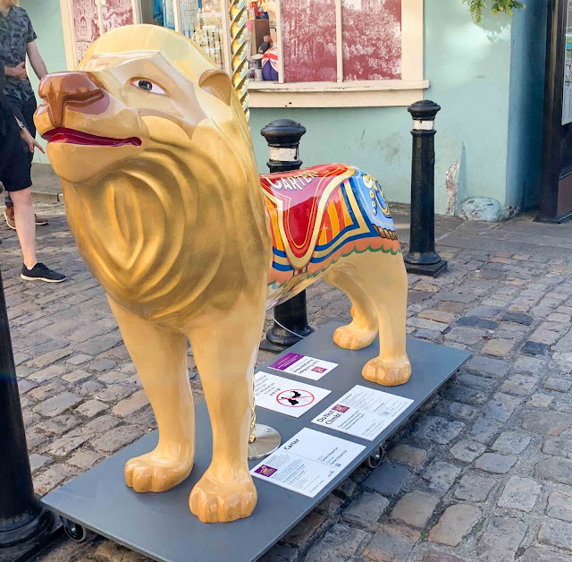 We found many colorful lion statues similar to the gorilla statues in Jersey island.