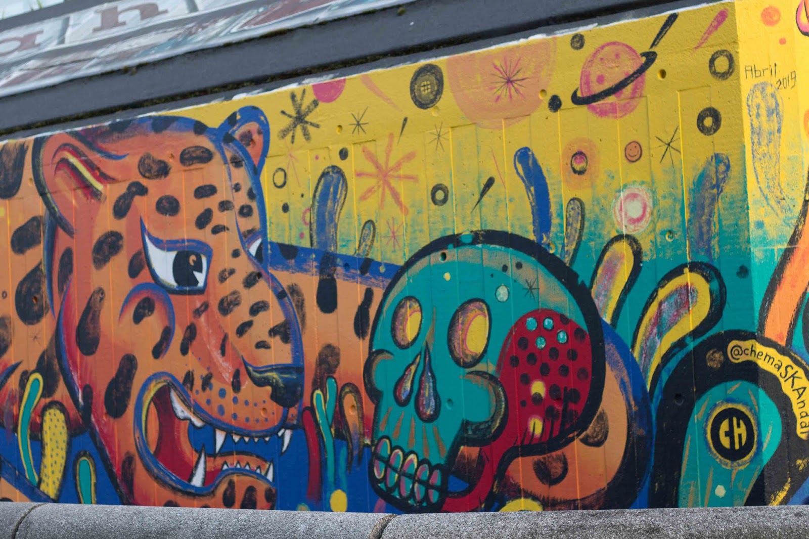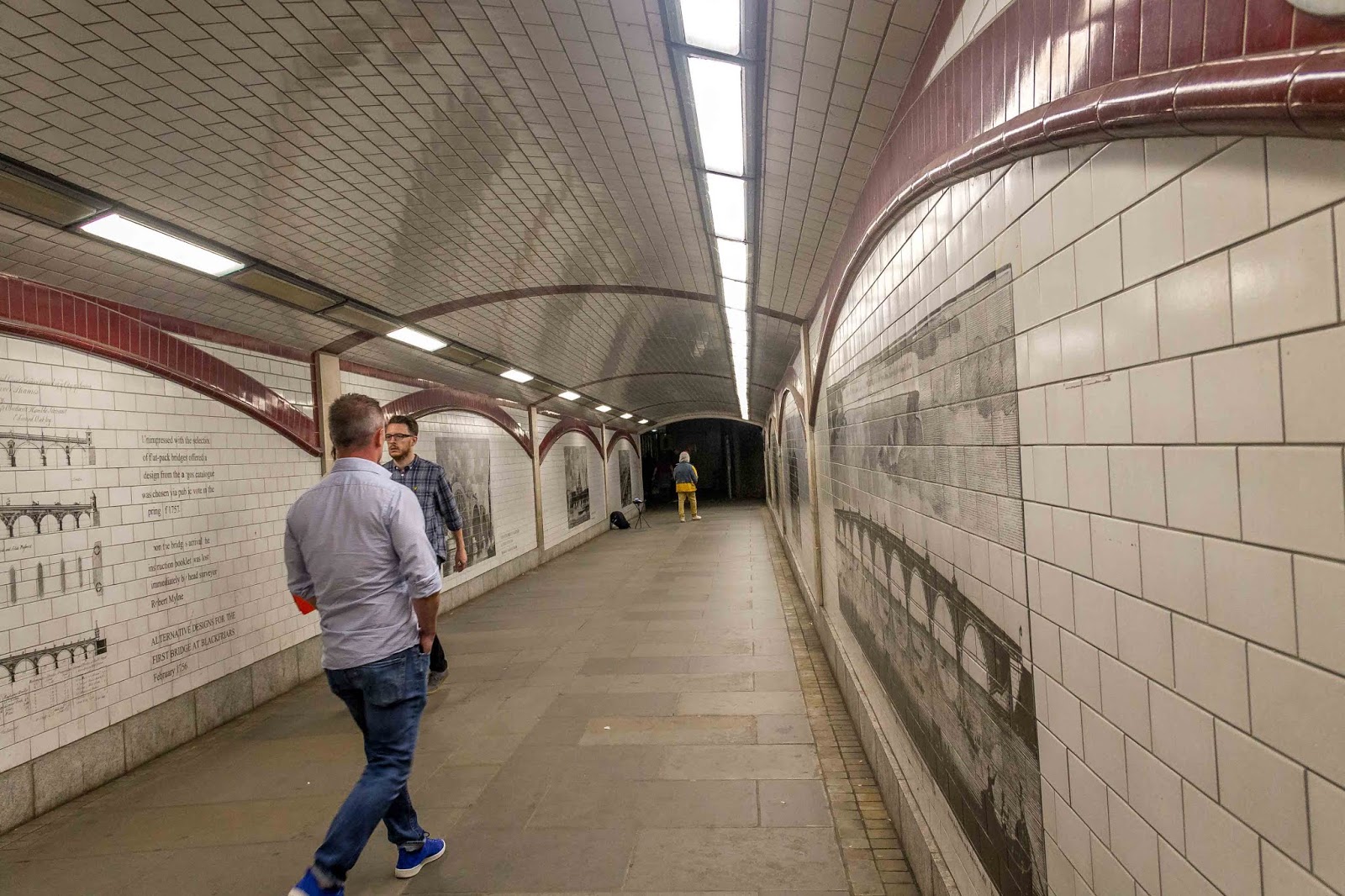 | There were many black and white murals on the walls of the tunnel |