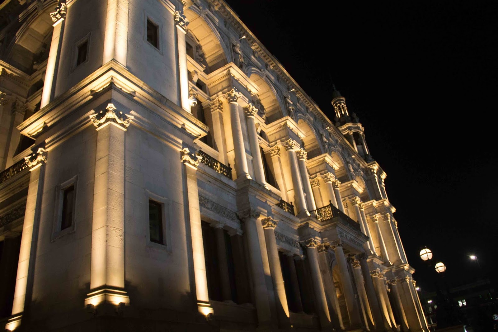 | The architecture on the buildings was pretty with the lights. |