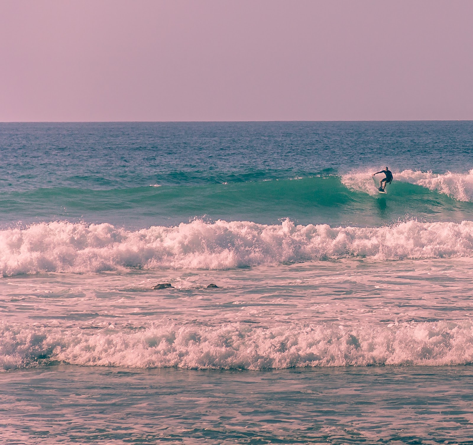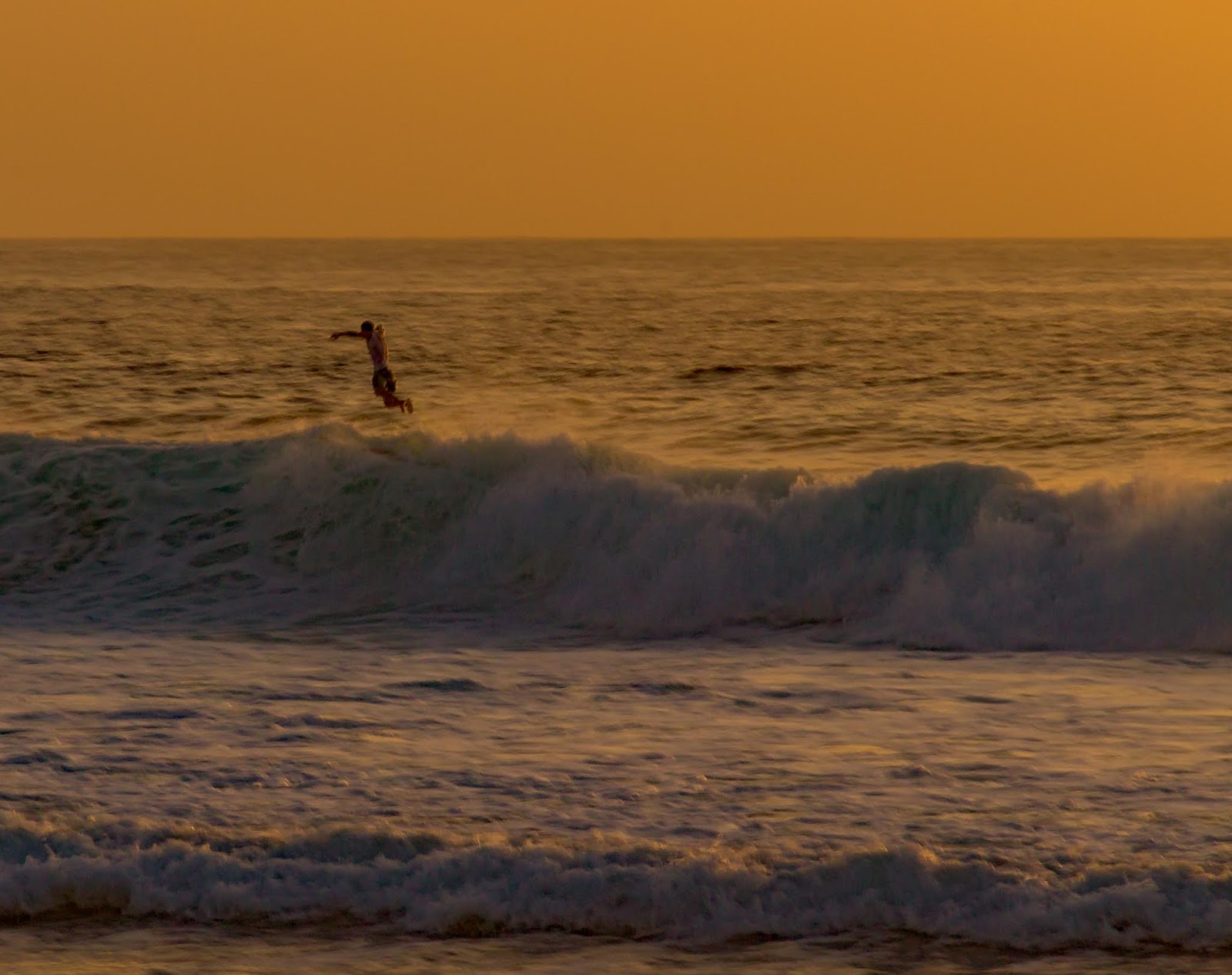 Its covered but you’re outside. We enjoyed the food and wouldn’t hesitate to return. We wandered back to the beach for the sunset and all the surfers were out and the waves were up!