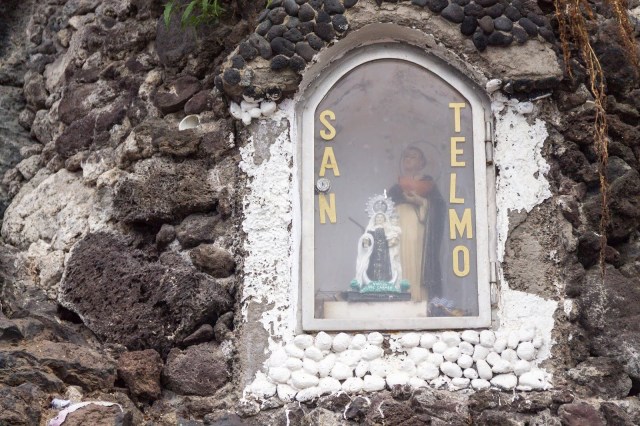 | This glassed in figurine was in the wall beside the ocean. The Church was just above the wall. |