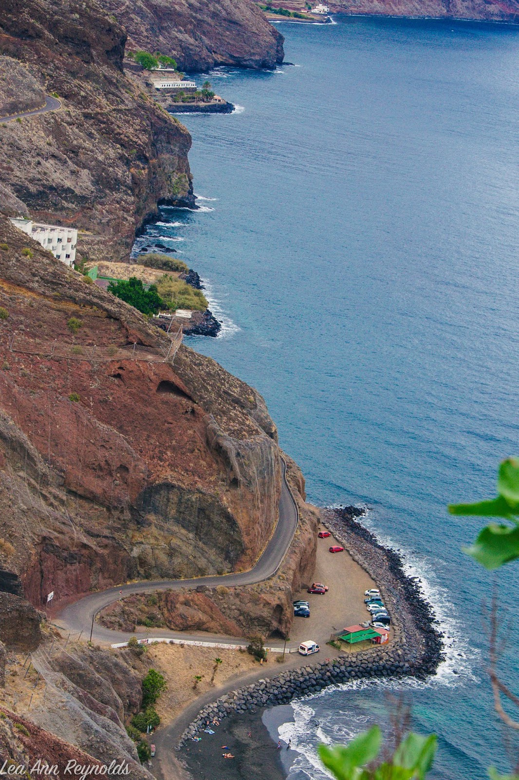 Such an amazing view but wow, was it windy. I had a hard time holding my camera still but was still able to get some good photos. We then made our way down the other side of the windy path and we could see this beautiful black beach from far up.