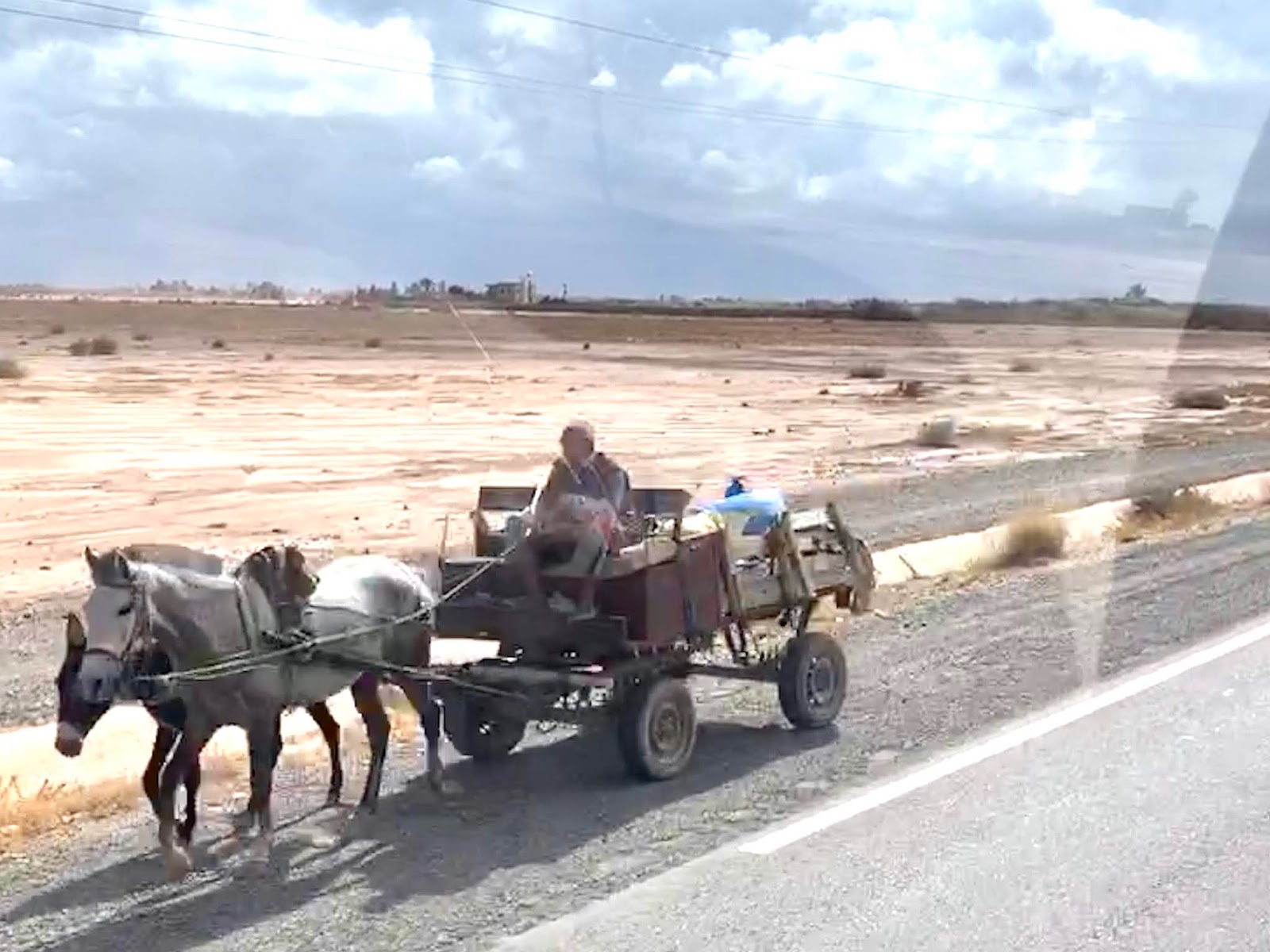 | Horse and Donkey (or mule) led cart – main freeway had more of these that had better tires. |