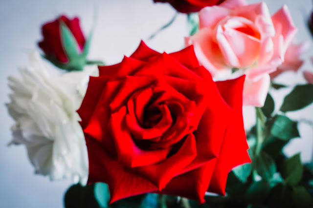 | When we arrived in the apartment, Bouchra had these roses in a vase with mint tea and morrocan bread. It was a welcoming gift. |