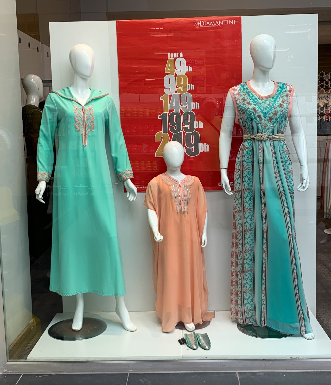 | One of the small shopping centers had this dress shop. The colors were pretty. Lots of silky type material. |