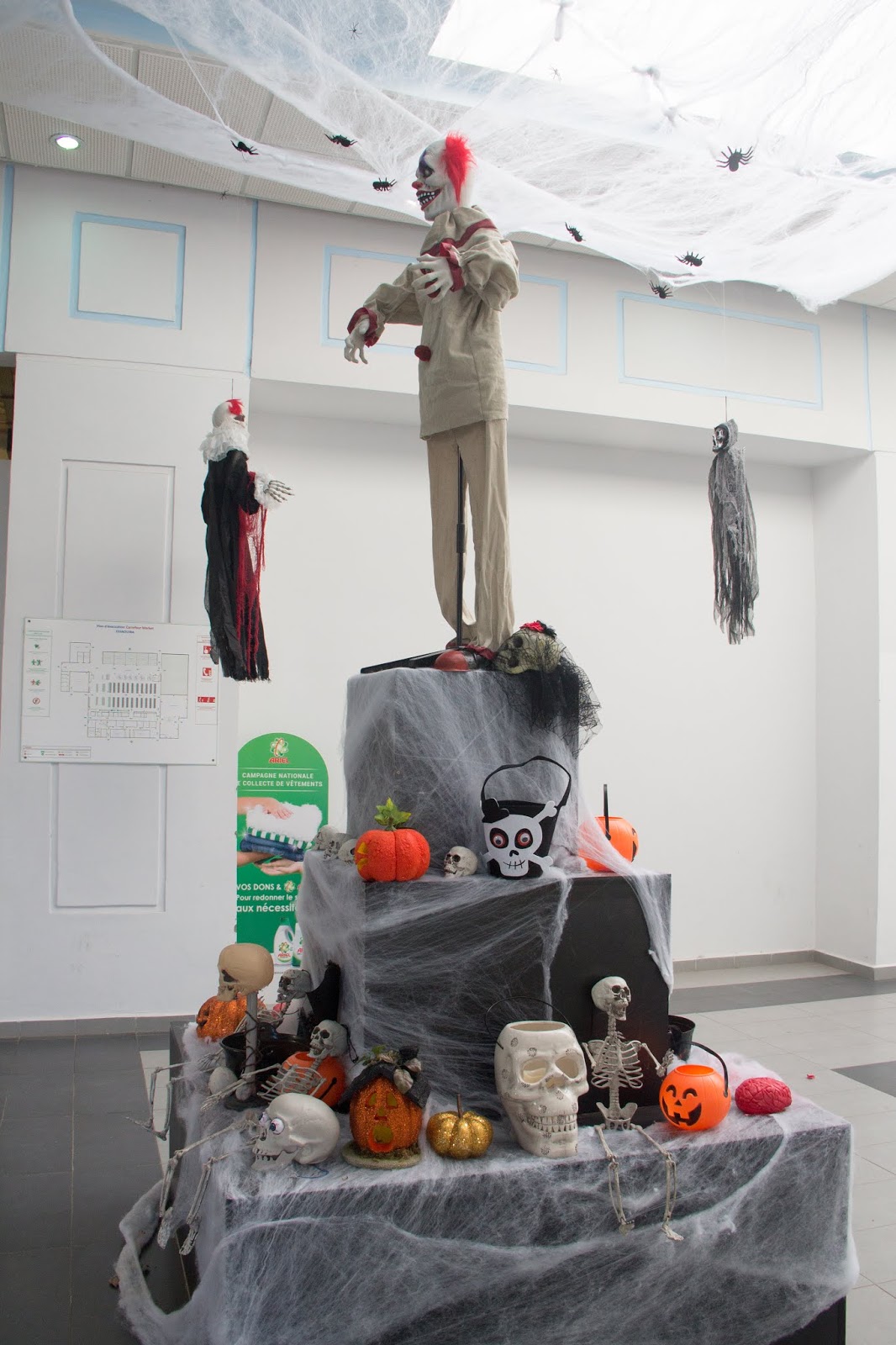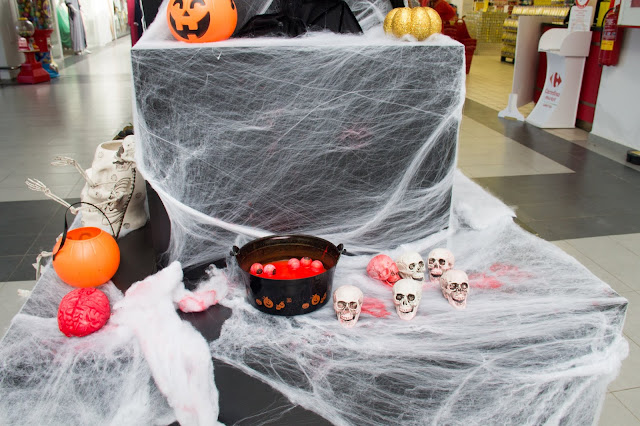| We were suprised that halloween is such a big deal. They go all out in decoration. Scary clowns and bloody eyeballs. EEWWW! |