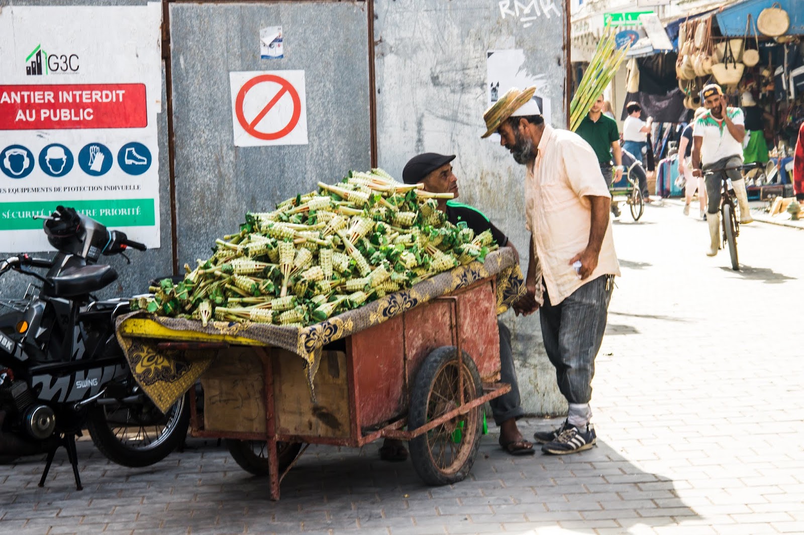 Each shop is set up and designed with the goods they want to sell. You find what you want and then you can haggle for the price. We found two of the throws and 1 scarf. Chuck’s final number was 140 dirham/$14 USD. We didn’t want to spend too much because we will leave the two throws here or in Marrakech. We just don’t have the room to take them.